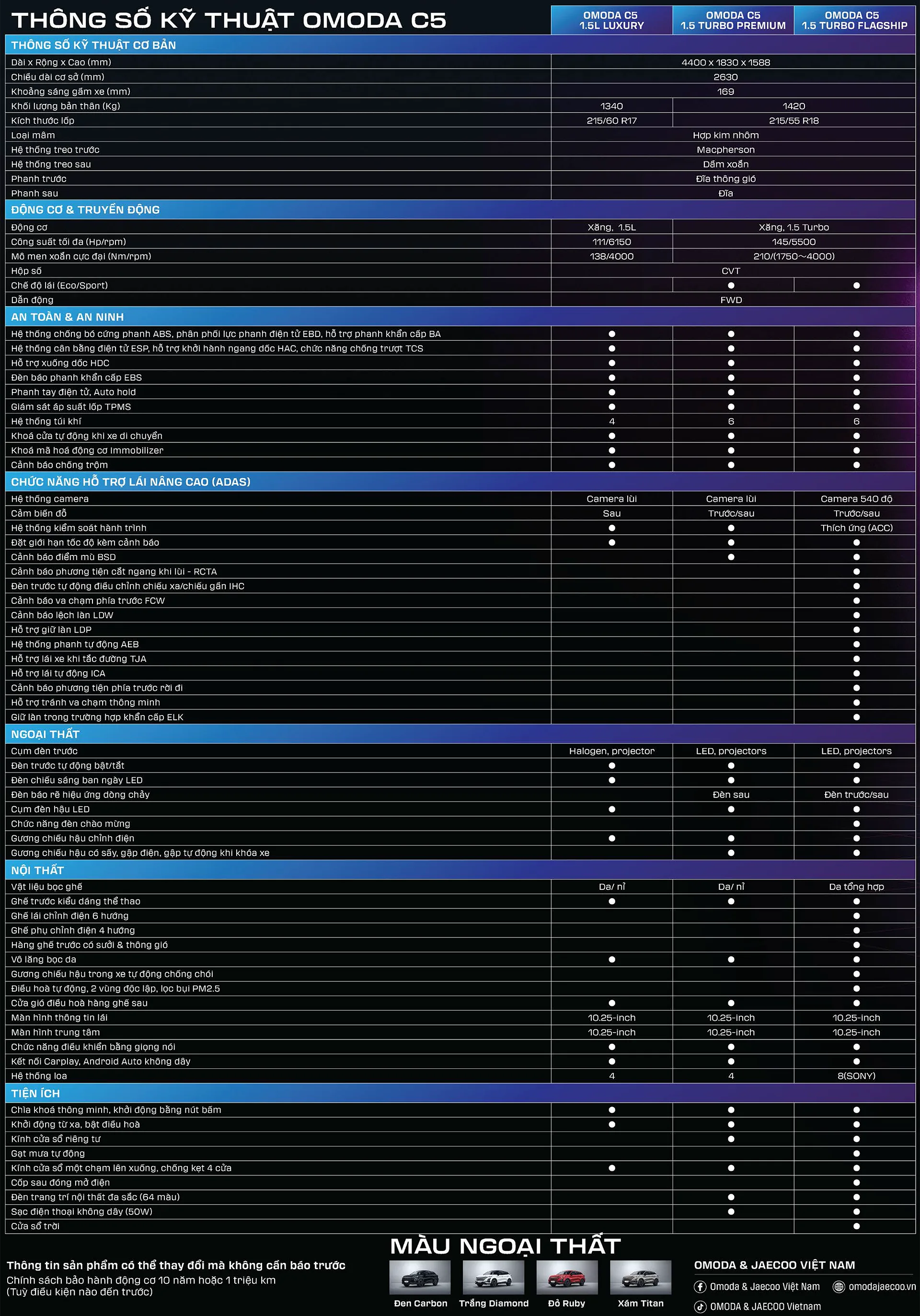Thông số của Omoda C5